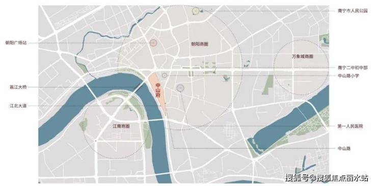 项目西临古老的邕江江畔,东侧为广西历史悠久的人气美食街——中山路夜市,也是南宁的城市名片,周边历史文化氛围浓厚,宋代城墙、老邕宁电报局、邕江宾馆、中山码头(孙中山先生指挥辛亥革命登陆处)等众多历史珍粹密布。