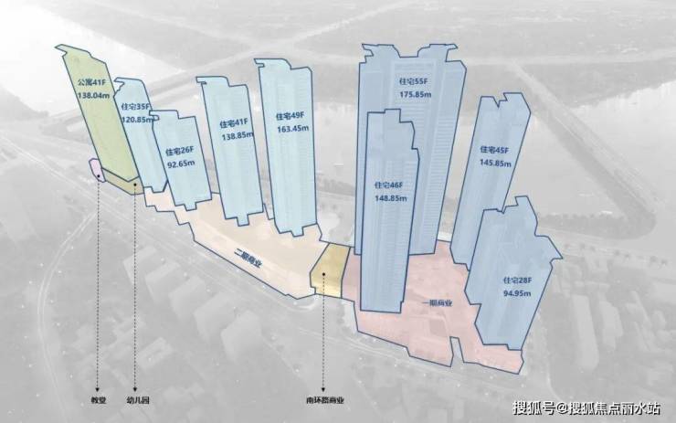项目规模427,455㎡,涵纳8栋瞰景住宅(含6栋超高层)与1栋轻奢公寓,底部约6万㎡万象汇商业MALL化零为整链接一/二期,以及幼儿园、城市教堂等多种业态,承载前中山路基督教堂的相关功能。