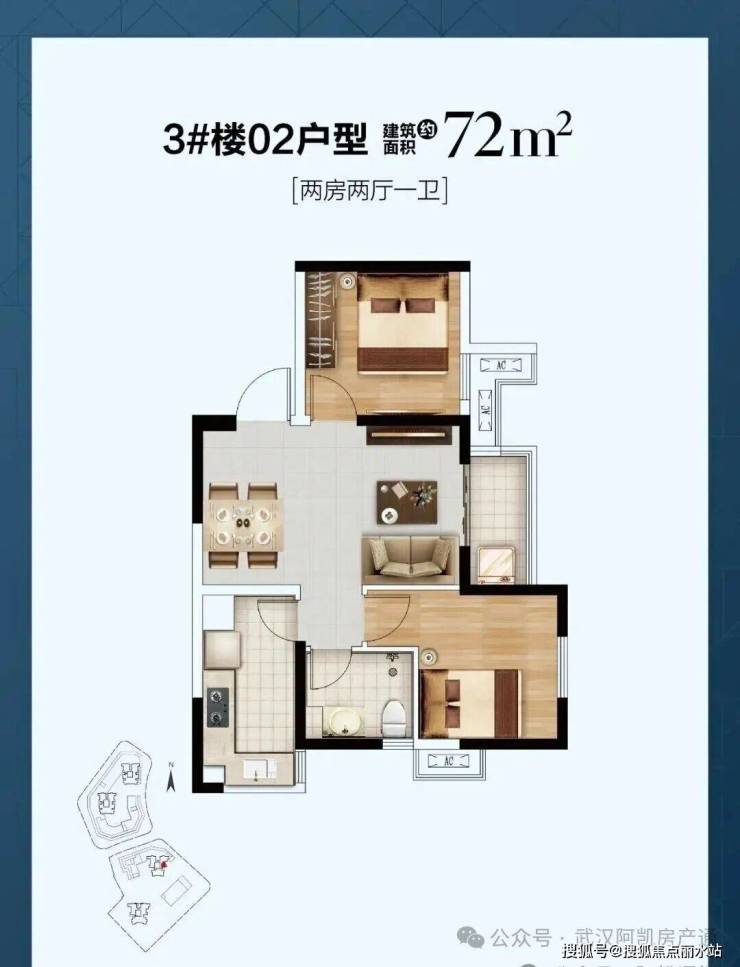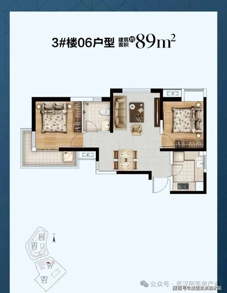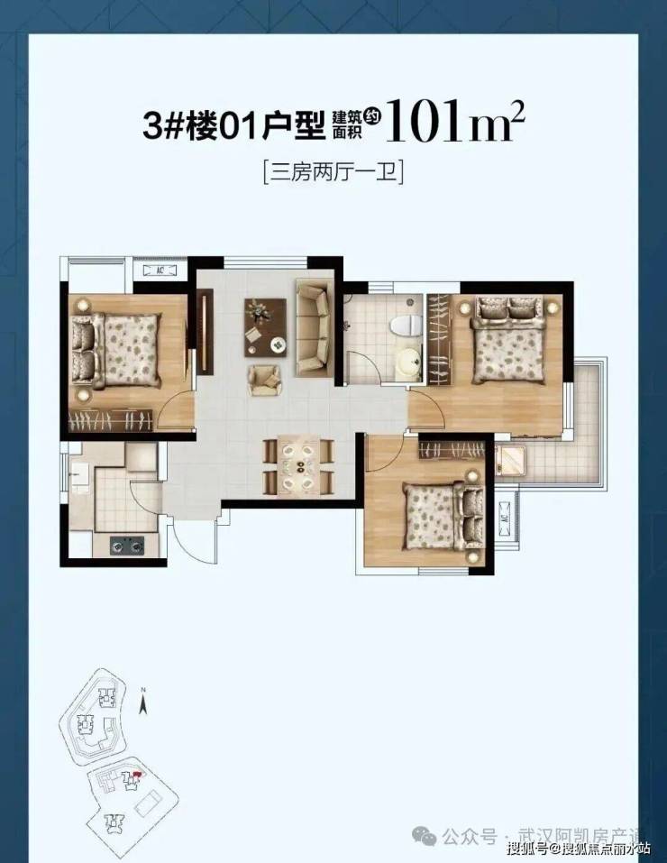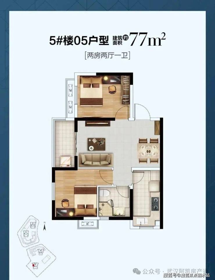 3号楼西边户型,户型结构与5号楼建面约77平基本一致。
