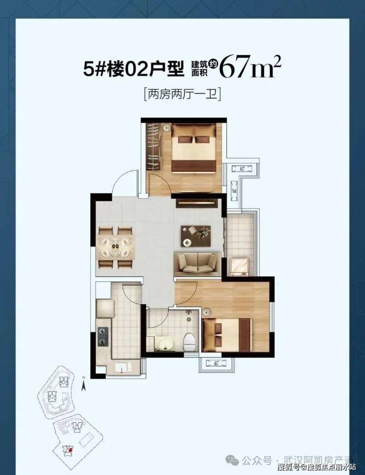 该户型为5号楼东侧户型,卧室、客厅等主要房间全朝东,两房设计,估计只适合单身或者小两口,朝南采光有限,居住舒适度一般。