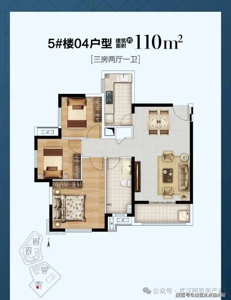 从平面图看,1号楼28层、2号楼48层、3号楼50层、5号楼47层,现阶段主要在售3、5号楼,均为3梯6户,在售面积段为建面约67-110平房源。