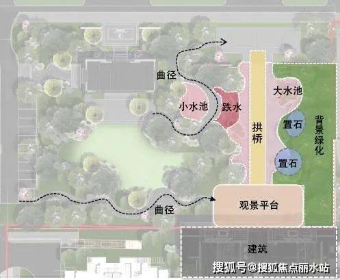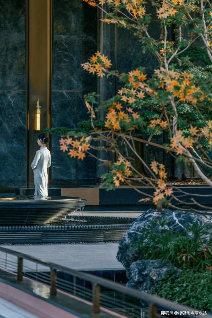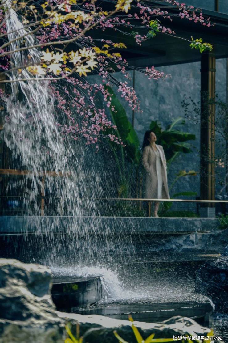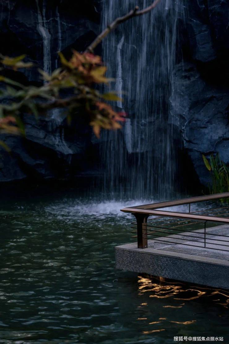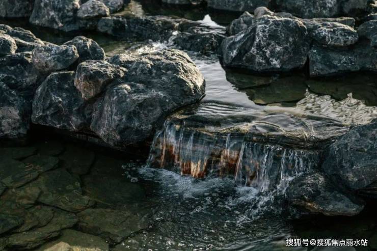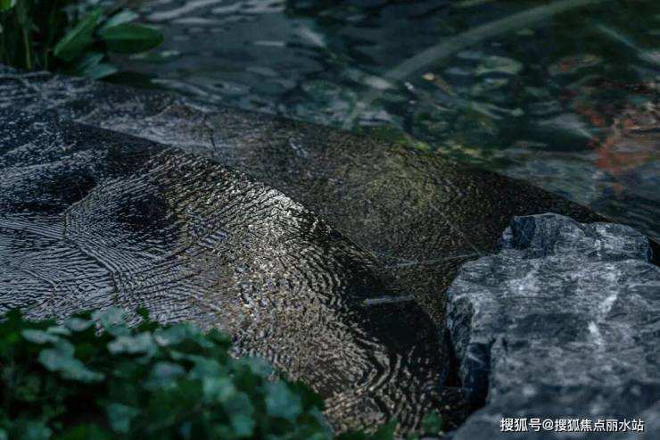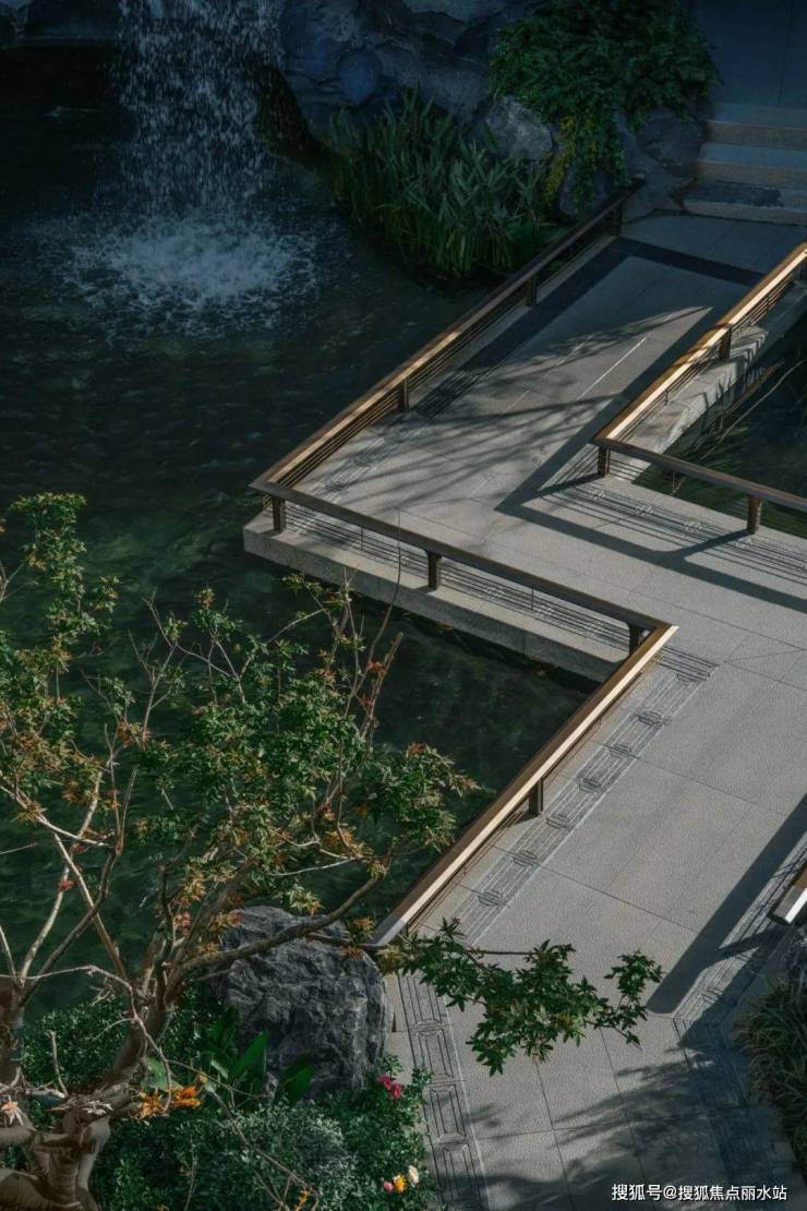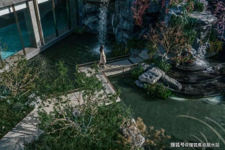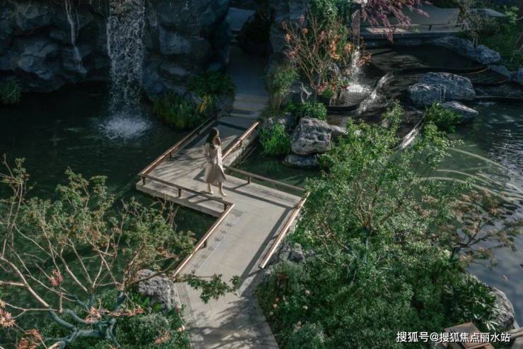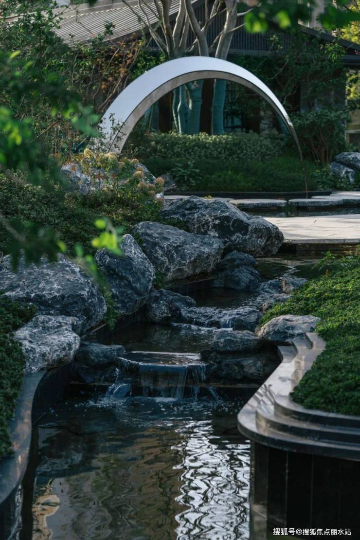 结合中式园林置石、跌水、曲径与绿化作为细节点缀