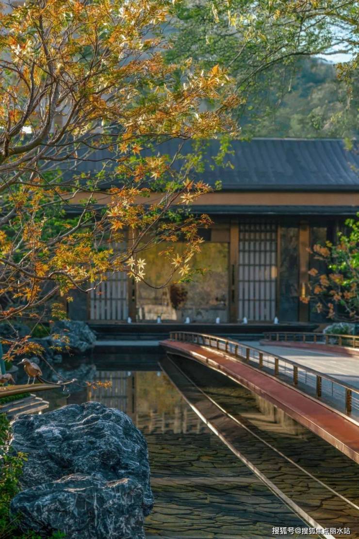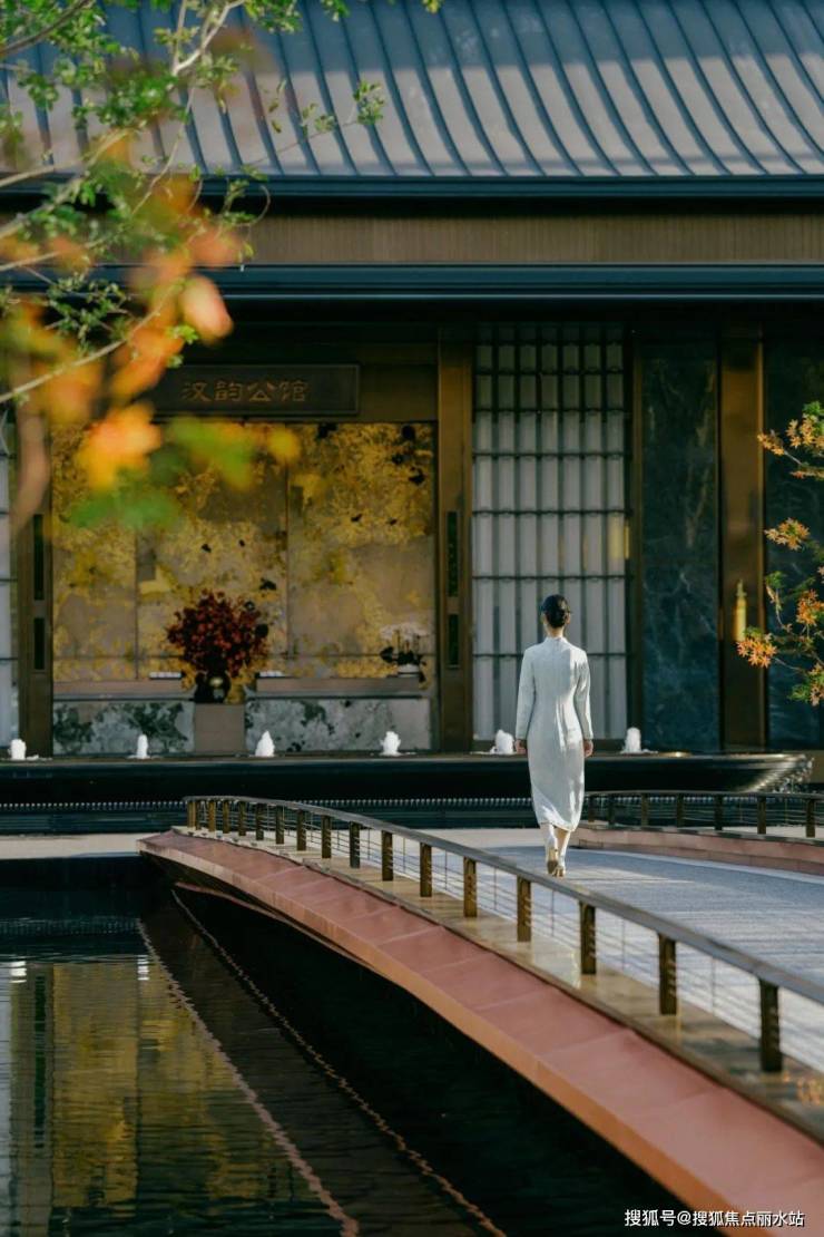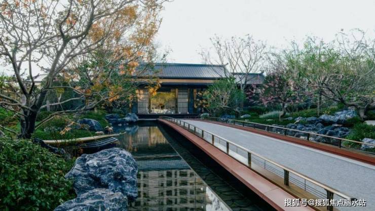 门为礼,水为乐,小桥两侧绿植传达着山峦起伏的韵律,一舟轻摇,一人独坐,池水悠悠,此间意境,宛若画卷中的风韵。