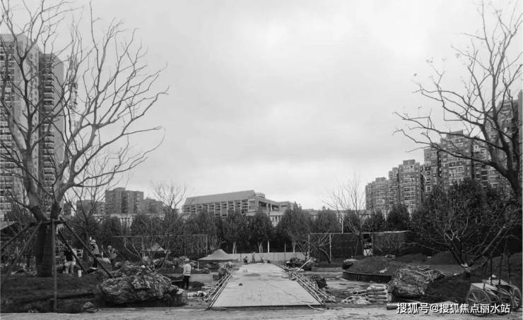 施工期间,武汉正值夏季高温炙热,常常达到35℃以上,地表温度更是高达40℃以上。面对夏季持续高温预警、气候干旱,绿化全过程反季节施工,项目团队严控苗木品类,通过选用容器苗、砖围苗、假植苗等各类成熟苗木,移栽过程对树穴、苗木土球、苗木根系进行精细化处理,栽种后通过抑制植物蒸腾,辅助树木吸取养分等措施,确保绿化即种即成景。特别是骨架乔木选型上,通过多角度现场感受空间,和各方多次沟通,最终选定精品且合适场地气质的乔木,为项目实景呈现良好效果提供了有效保障。