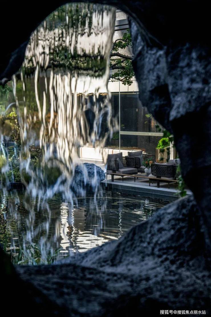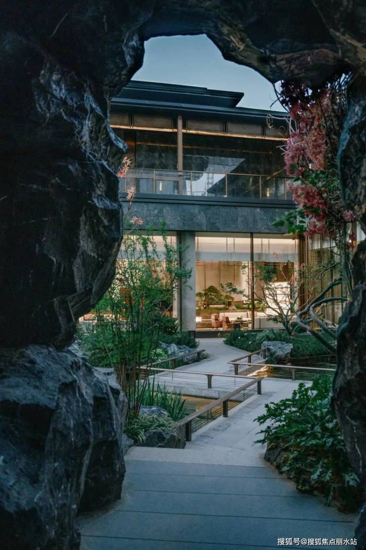 再现陶翁寻觅桃源的场景,从入口空间逐级而下,我们在下沉庭院为居者呈现一处隐于城市之间的山谷秘境。