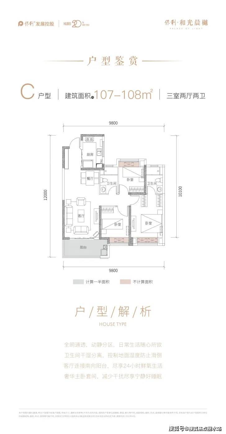 保利和光晨樾 平层户型·建面/107㎡