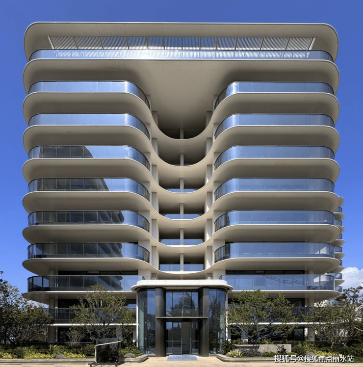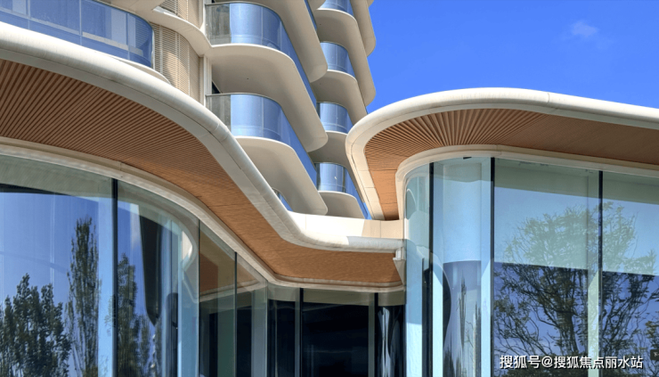 极简的建筑立面形式;精致的建筑表皮;海洋流体美学线条形成建筑外观群像独特的气质和标签。