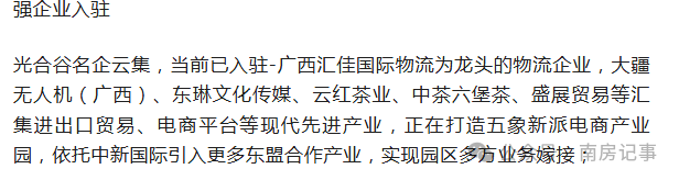 全面吸纳优质企业落户,现入驻企业优享广西自贸区支持政策及南宁片区支持政策(含税收优惠政策及经济贡献奖励、金融补贴等),降低企业运营成本,保障企业稳健发展;