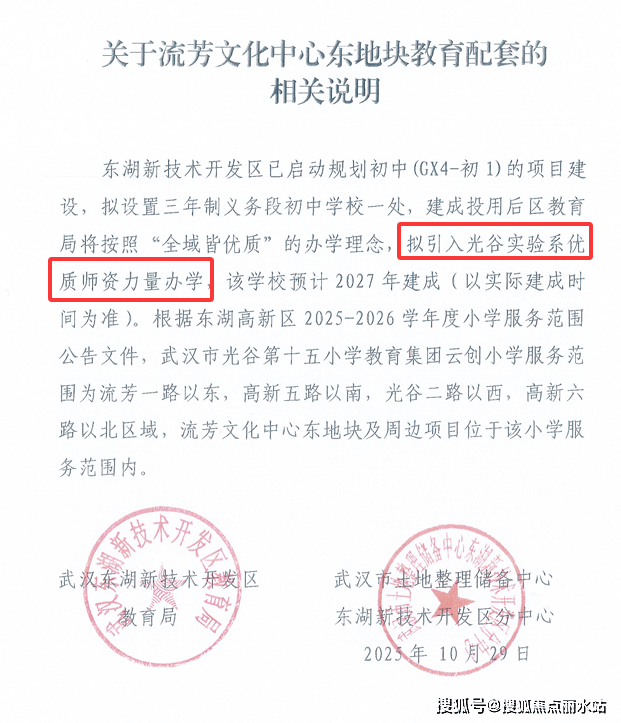 板块内教育用地,计划引入光谷实验系优质师资力量办学;