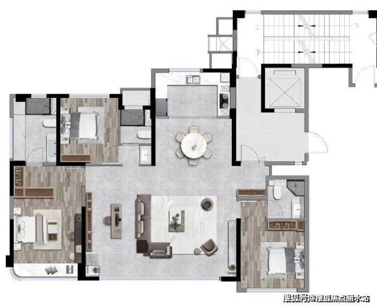 该户型整体几乎零浪费,结合四代宅政策,让每一个厅房都拥有阔绰尺度、大空间,实现面积充足的3+1房,大大提升了居住舒适性。