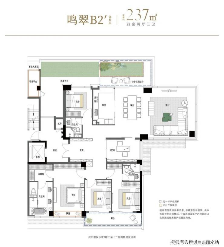 通过“全景舱”无柱转角空间设计,大宅内部全景落地窗如一幅展开的画卷,将约270°的江景视野尽数纳入。例如,鸣翠B2’建面约237㎡,进门尺度玄关设计,颠覆性270°环幕无界开阔餐客横厅,加上南向空中花园阳台,让空间完全打开,成为家族共鸣安放之地。