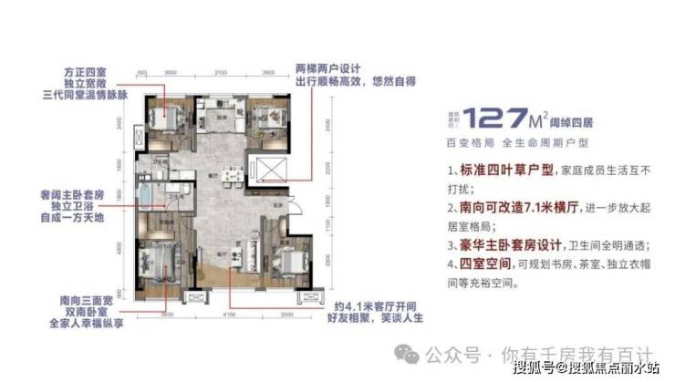 产品规划:建筑面积约88(2+1户型)、105(3+2户型)、115(3+2户型)、126㎡(4+2户型);