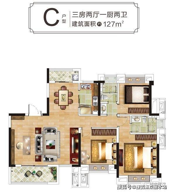 C户型(建面约127平):主要是7、8号楼的全部户型;
