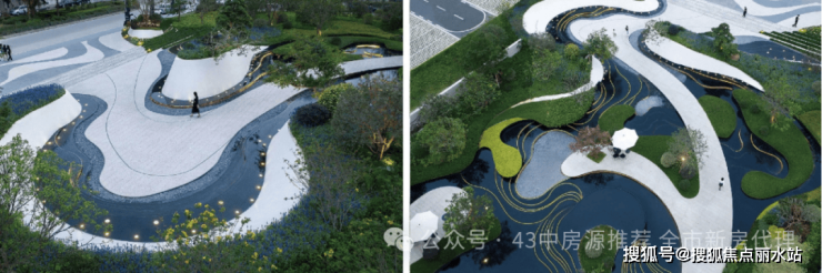 社区内部打造以“云、澜、悦”为主题的艺术园林,打造南北双区“艺术园林”和“森系园林”体系,将“云、水”的艺术特性融入景观,突出整个园区的韵律与层次。