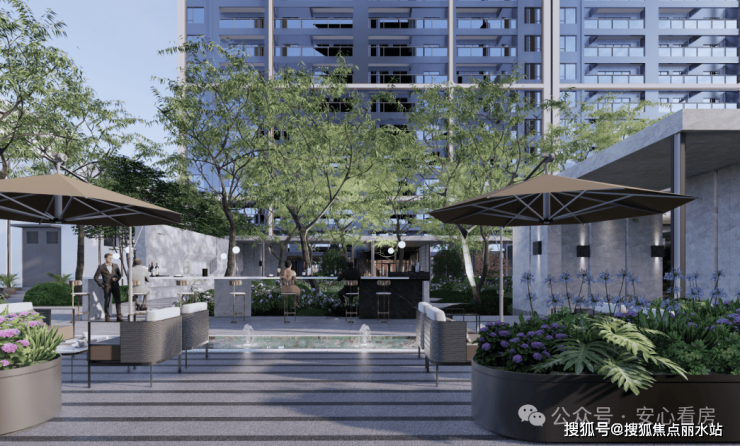 松弛感:中心“水瀑光院”水波荡漾,心绪自轻松