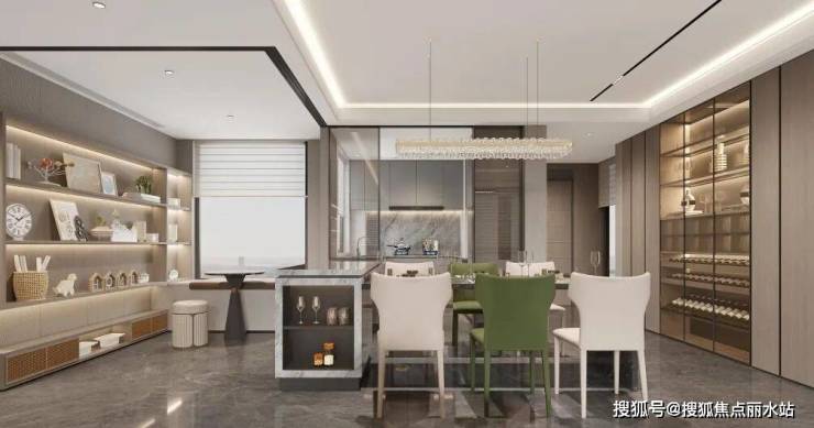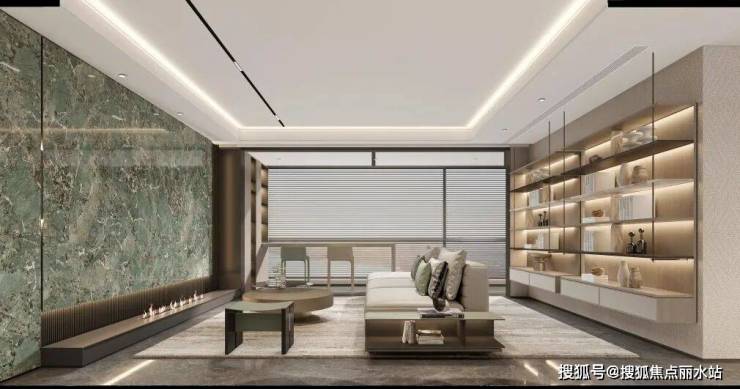 整体采用现代中式的风格,以“书香门第,儒雅文化”的设计思路,采用超大窗墙比,体量划分舒展、轻盈,辅以金属,玻璃,石材和铝板一体板等材料,强化高端公建化的立面形象,形成精致的高定人居体验。
