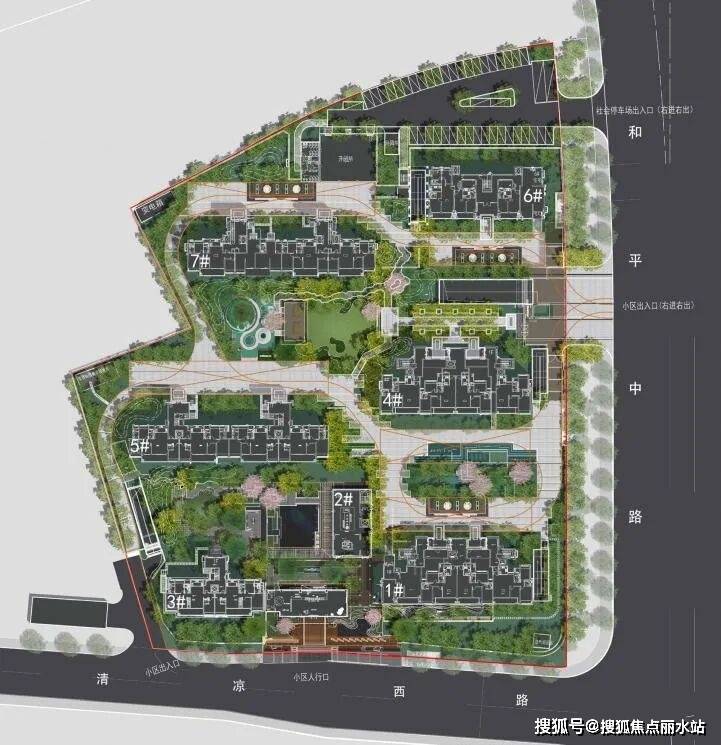 地块形状不规则,周边限制条件较多,故而因地制宜,规划4栋高层和2栋洋房,结合景观打造小而精的雅致生活空间,从而实现“远处都市喧嚣,近处安逸宁静”的奢隐生活。