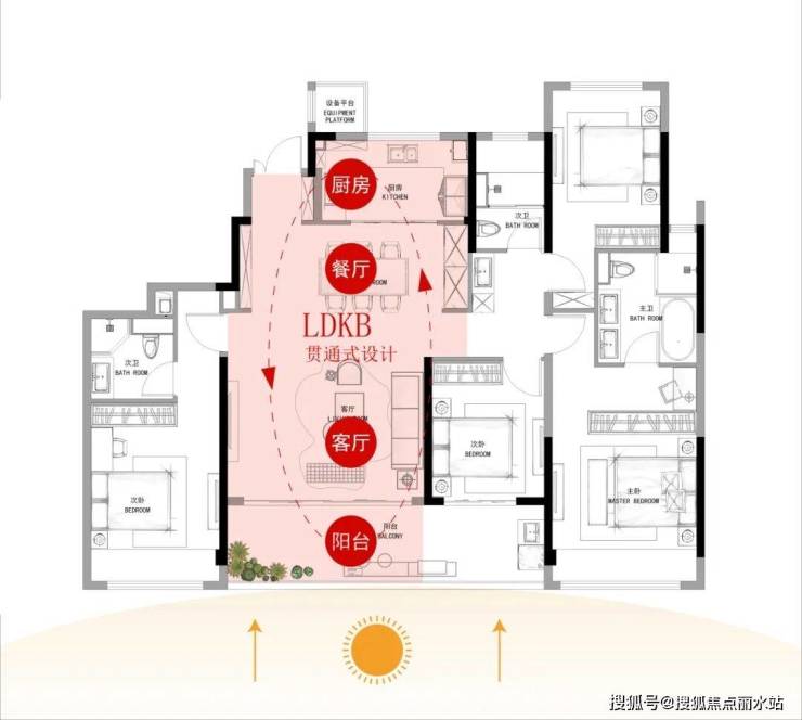 私享静谧和欢聚时光是家庭生活的两大“主旋律”,因此公区的功能性、延展性、互动性至关重要,打破传统客厅零散切割的功能分区,我们选择将客厅、餐厅、厨房、阳台彻底贯通,形成约45.4㎡LDKB一体化巨厅,承载多重生活场景,实现空间的多区域联动和场景的多元互动,加倍提升人居体验。