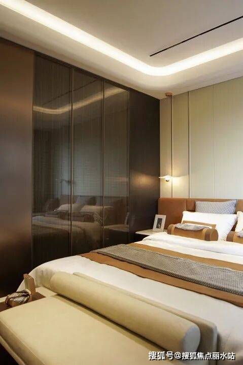 南向双套房设计,主卧与次卧皆享独立卫浴与景观视野,既满足两代人的私密需求,又让亲情保持恰到好处的温度。约33.8㎡主卧套房内,步入式衣帽间与双台盆浴室自成体系,奢居氛围感拉满;这里不只是睡觉的房间,而是承载阅读、瑜伽、观星等精神需求的治愈场域。