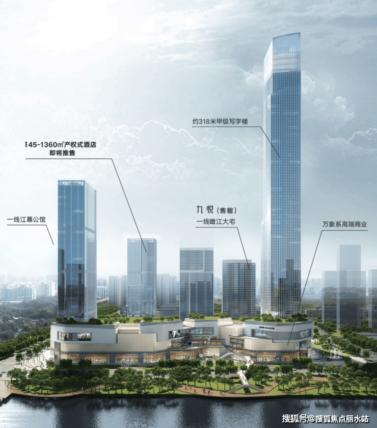 于万象综合体上,集萃不可复制土地、江景、商业与圈层等臻稀资源,与一线瞰江大宅——九悦、约14万方万象系高端商业、约318米甲级写字楼、豪华江景酒店、开放式潮流商街业态全维互联,感知更立体、更多元、更高级、更国际全新生活方式。