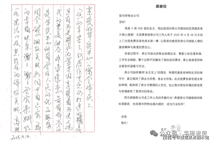 而对业主而言,这种包含前置思考的服务无疑是隐藏惊喜!一封封感谢信,便是最佳见证~