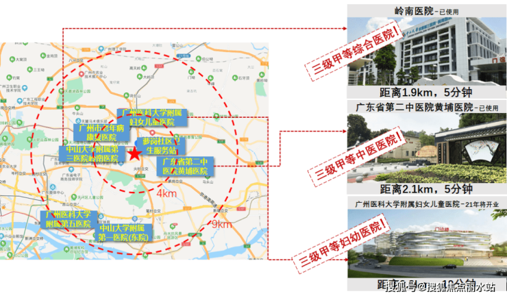 4km内三大三甲医院配套,岭南医院、广东省第二中医院黄埔医院、广州医科大学附属妇女儿童医院,为健康安全保驾护航