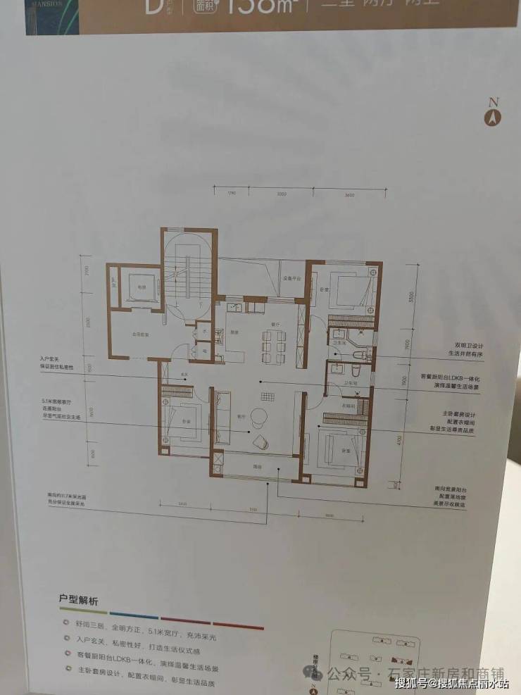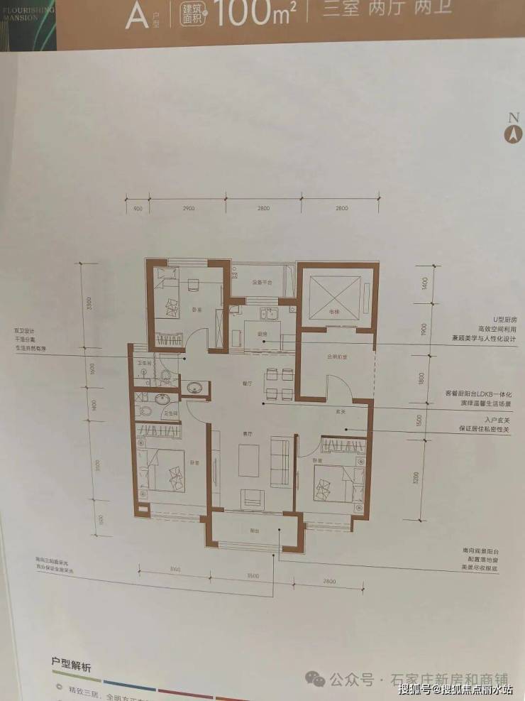 通过户型得知1梯两户,三叶草户型,南北通透,