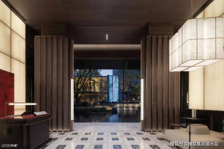 走廊之上,叠瀑流动。雅奢玉章灯具,为整个住区量身定制,暗色暖光挥洒,透露出细腻而温暖的状态,藏于自然又显于自然。