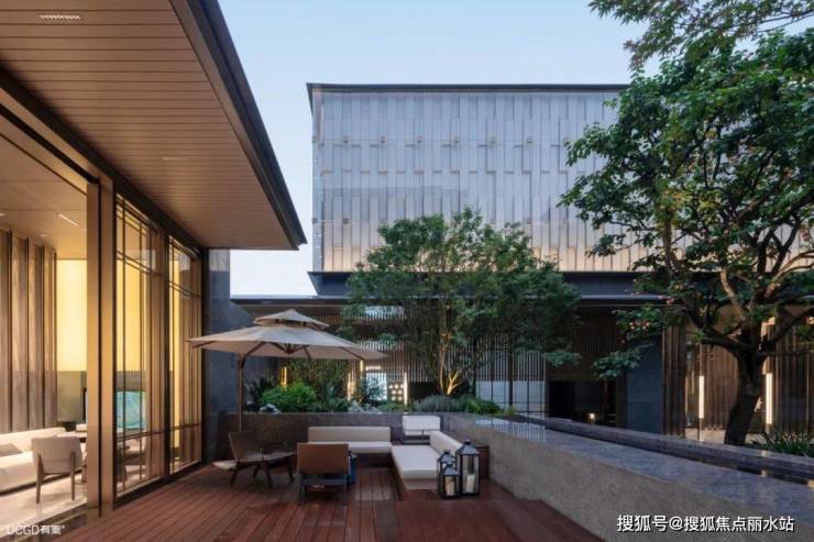 建筑、景观、室内采用一体化设计,门廊、客厅、庭院层层递进,景观视线随开合节奏和空间转折而变化,呈现出静谧而仪式的氛围感。