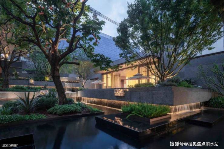 空间之间相互渗透融合,建筑消隐在水绿洄游的自然生境之中,山地叠翠又融于下沉庭院,沉烟、叠水、瀑布,打造独具山城特色的“流水别墅”意境。