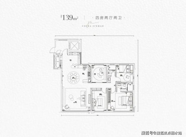 • 139㎡四房:独立电梯厅入户,超50㎡ LDK一体化公区,4房+X功能区实现全屋满载收纳,得房率高达104.2%