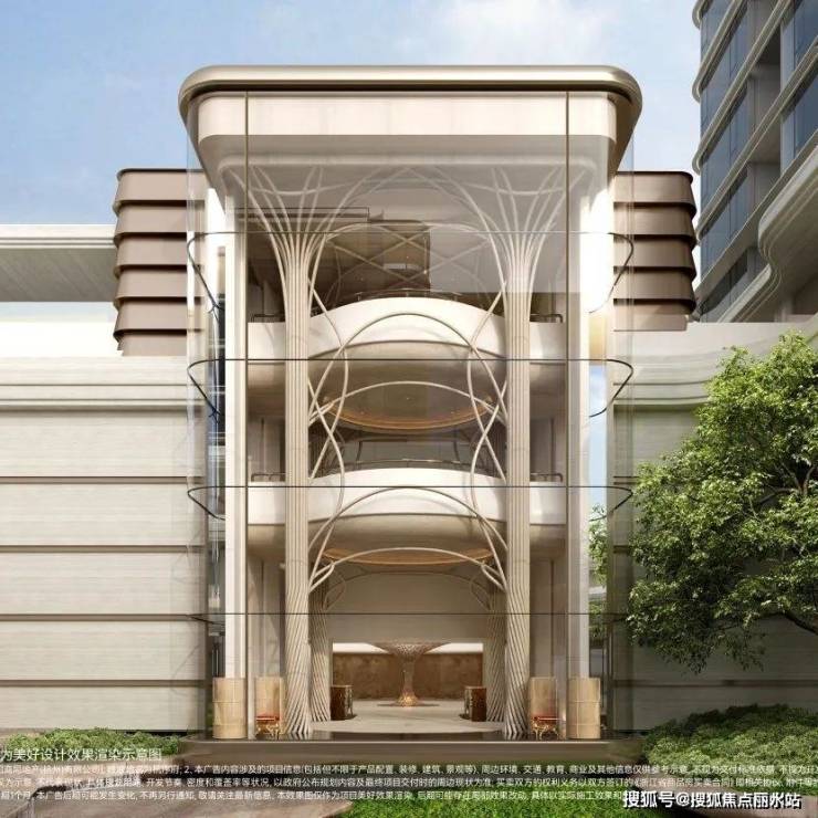 建筑设计团队为绿城GAD,外立面以“站立的江潮”为核心灵感,采用不对称的设计手法,精选白世茂石材+玻璃+铝板为主体,将钱塘江潮的千钧之力和流水之韵凝练于建筑肌理之中,打造出兼具国际审美与东方寓意的城市封面。