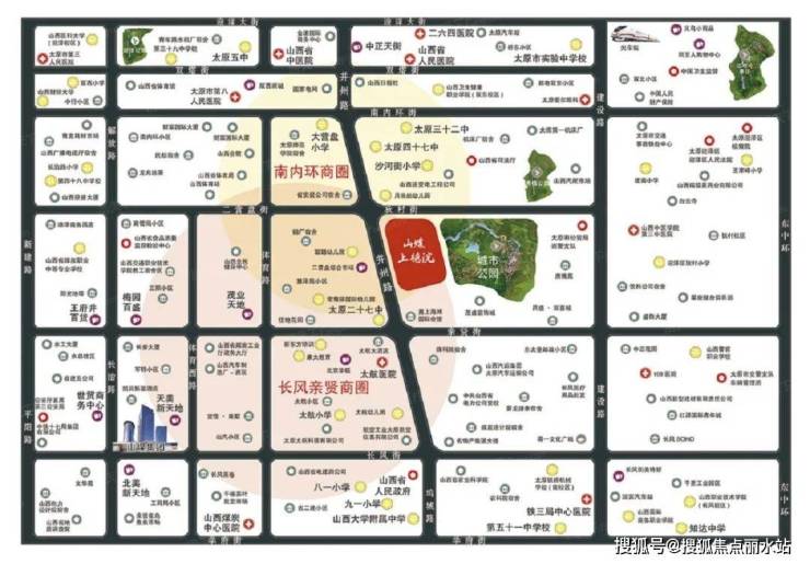 楼盘周边医疗资源较为丰富,直线3km范围内有36个一级及以上医院。其中山西省针灸医院距离楼盘841m,山西省人民医院南院区距离楼盘1.8km,山西医科大学附属人民医院距离楼盘1.9km,山西省针灸医院距离楼盘1.9km,山西省人民医院距离楼盘1.9km,等等,为医疗需求提供了可靠保障。