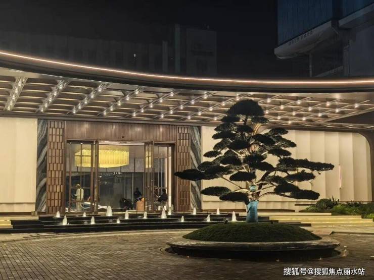 星空吊顶与地面拼花呼应,各地甄选罗汉松坐镇中央,祥云踏步搭配流水景致,暗藏“健康平安、事业高升”的美好寓意。