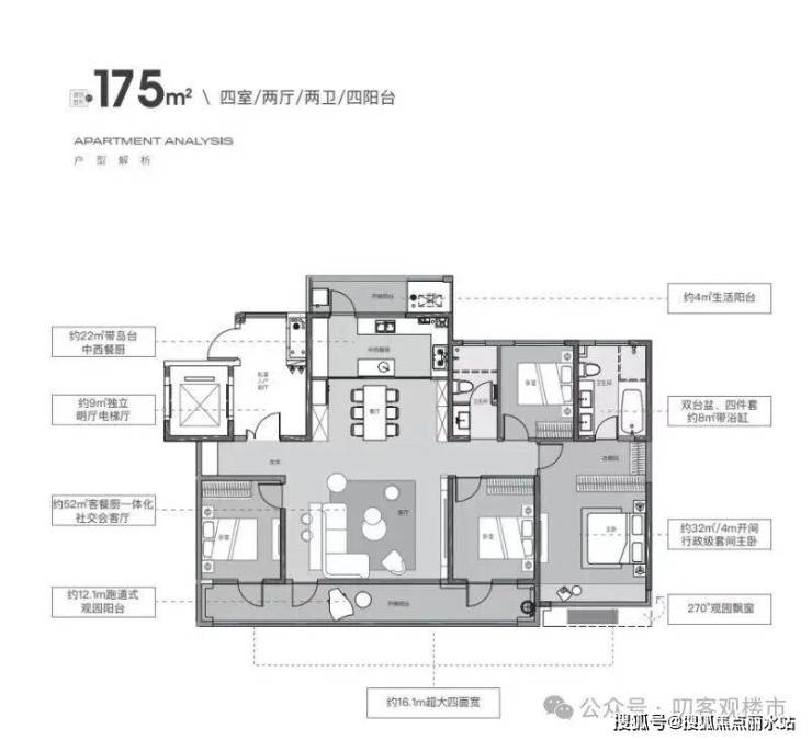 层高:标准层高3.05m 、175㎡以上3.15m