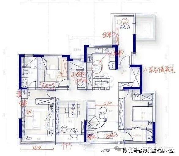 原始户型适合四房家庭,承重墙分配做的还不错。如果家庭成员没有这么多,改造的余地蛮大的。