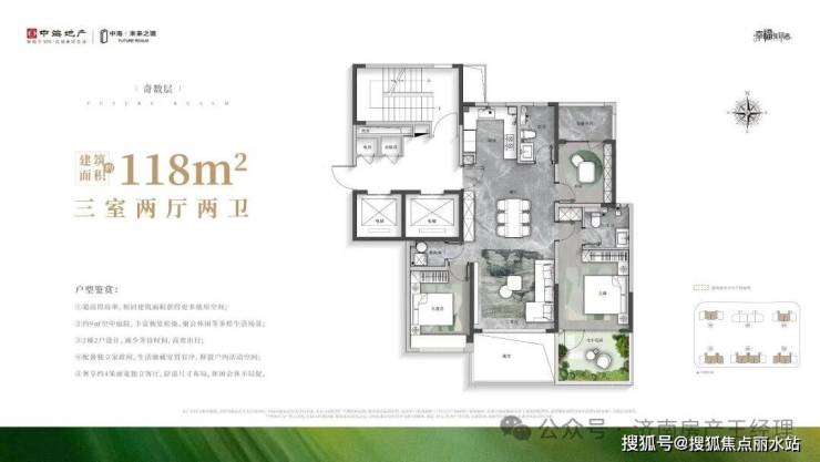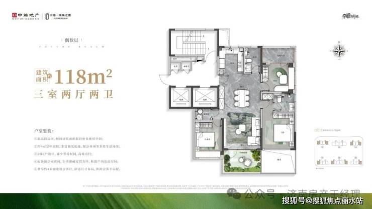 下面欣赏下建面约118㎡三室两厅两卫的四个户型: