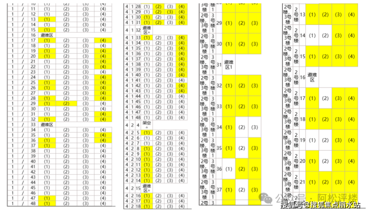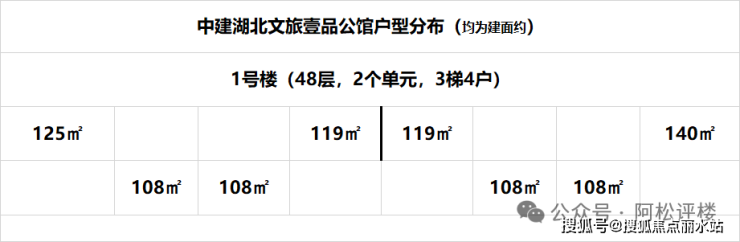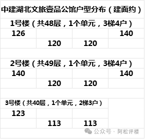 1号楼48层,1个单元,3梯4户;2号楼49层,1个单元,也是3梯4户;3号楼40层,1个单元,2梯3户。