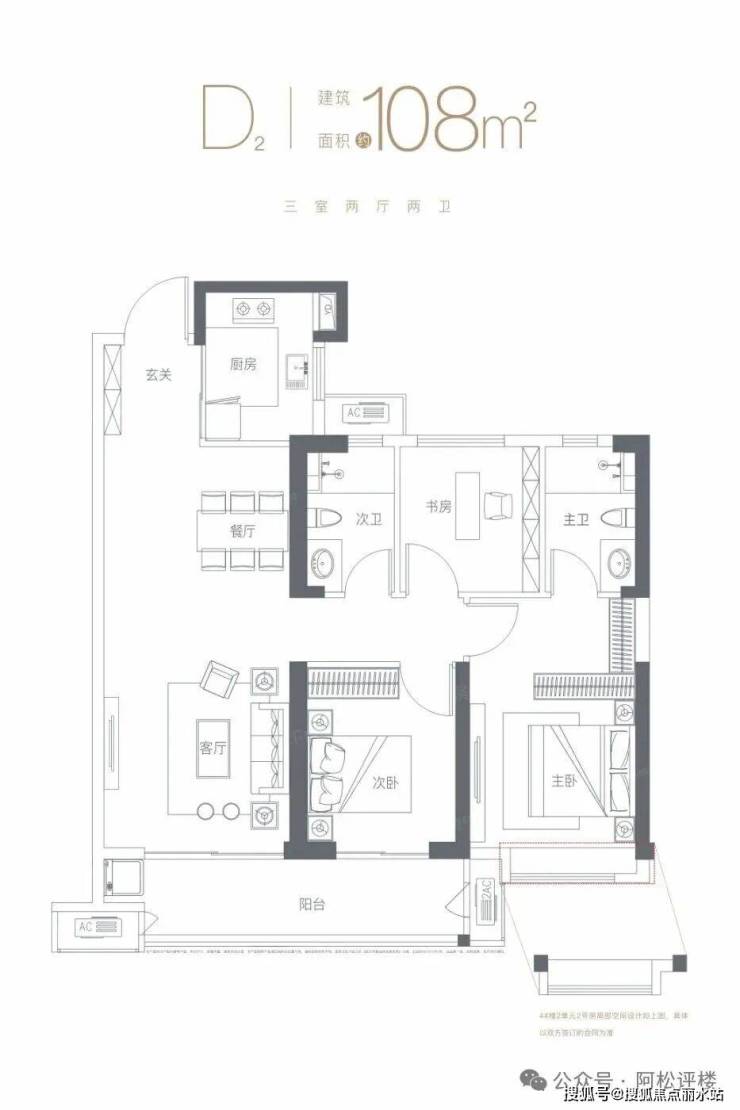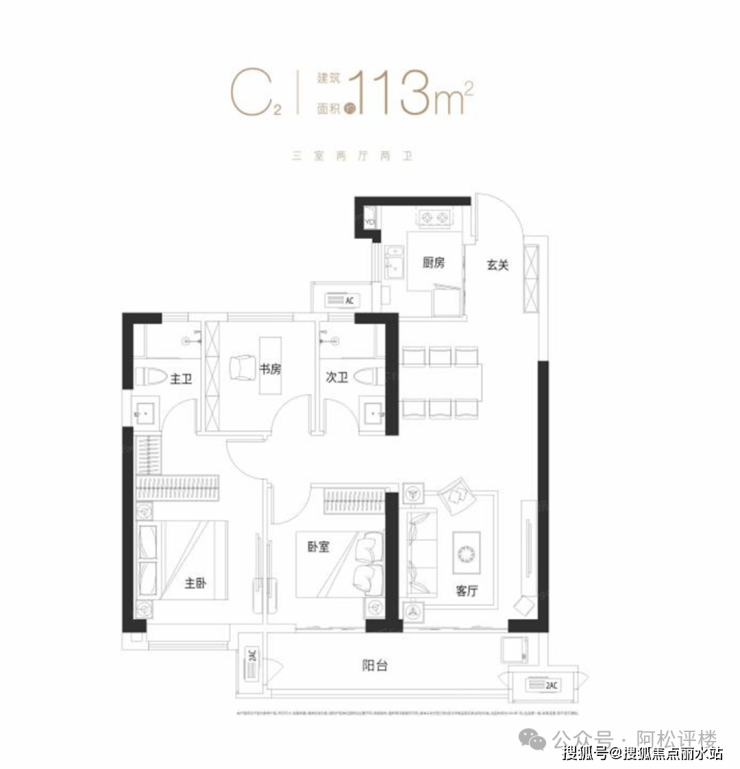 该户型为3号楼的西侧边户,三开间朝南,南北通透,客餐厅空气可南北对流。