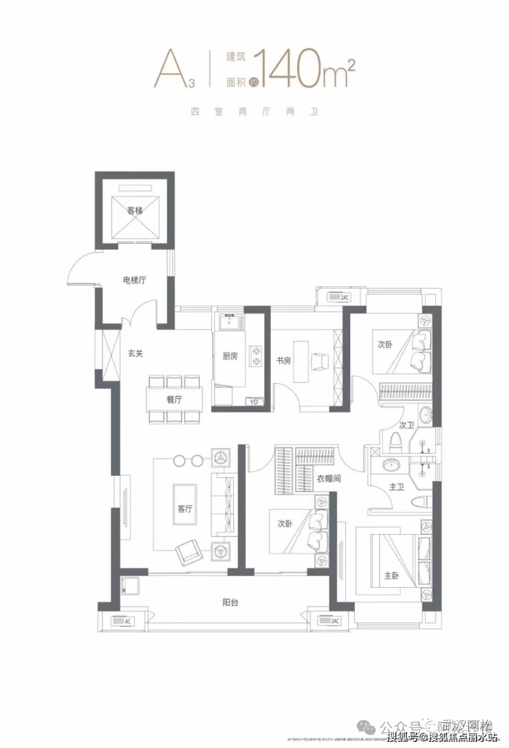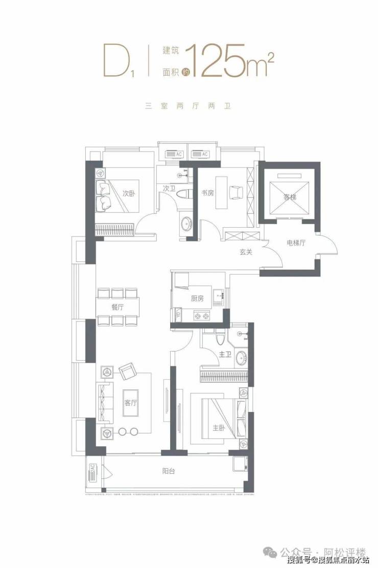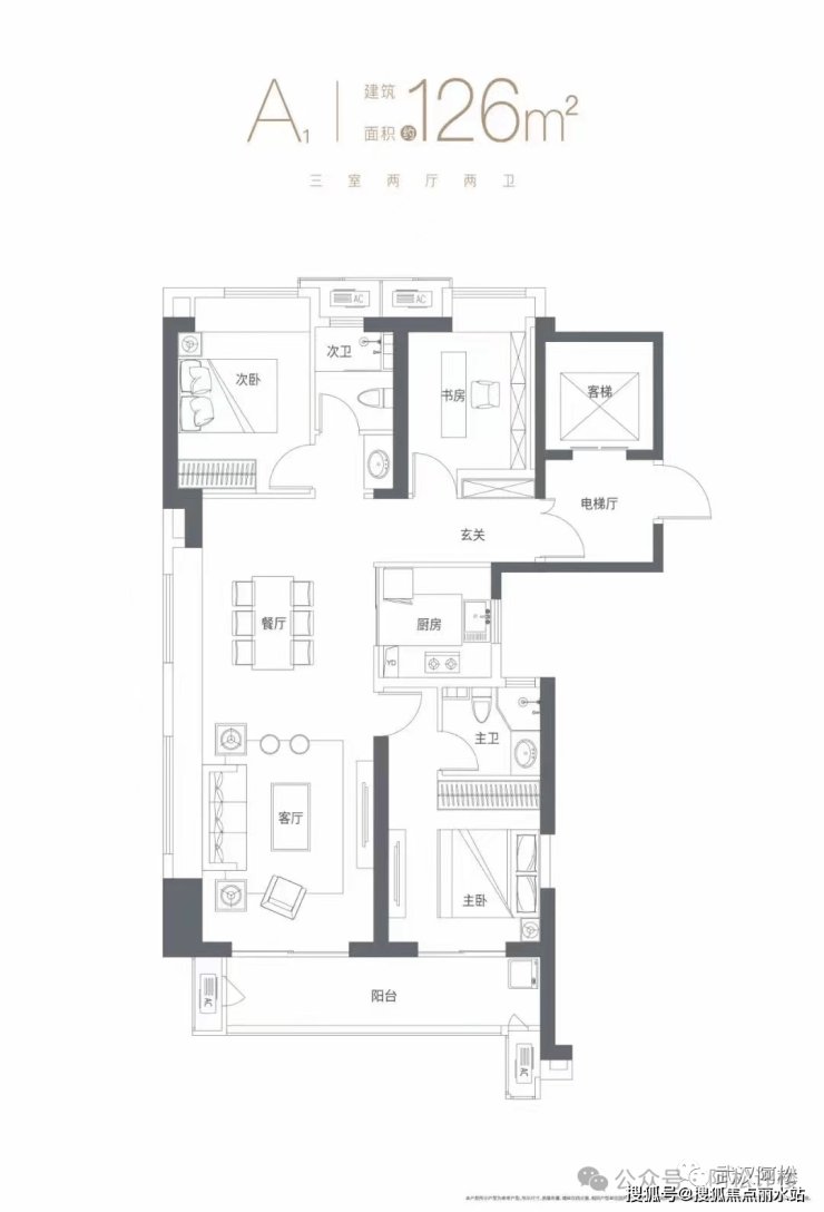 该户型位于3号楼,北侧带连廊,户型结构与120平户型相差不大。