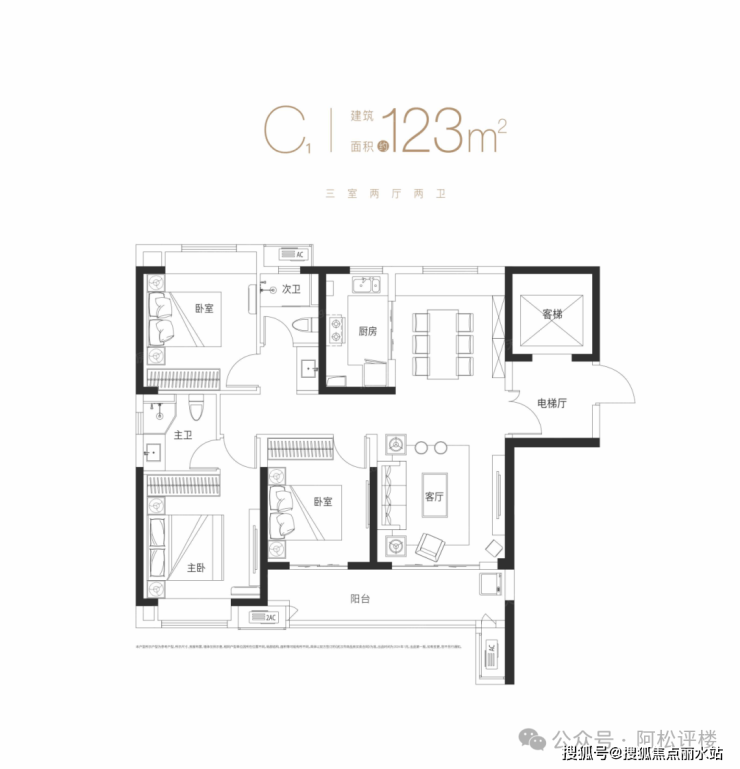 该户型为1号楼的西侧端头边户,电梯厅直接直通家门,两开间朝南,可三面采光。