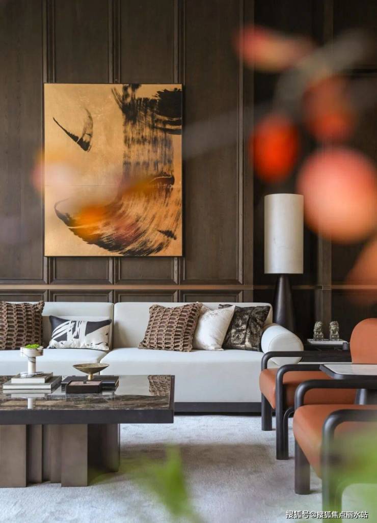 同时,项目入口公园,参考苏州留园的格局,在公园亭里有“月洞门”,运用“藻井”天花,在风雨连廊里有“挂落”,把苏州留园印象搬回家。