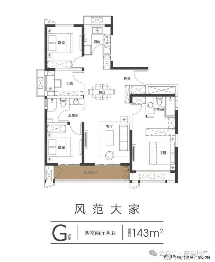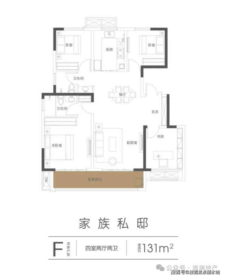 143㎡户型7.4米宽阳台、4米宽客厅开间。