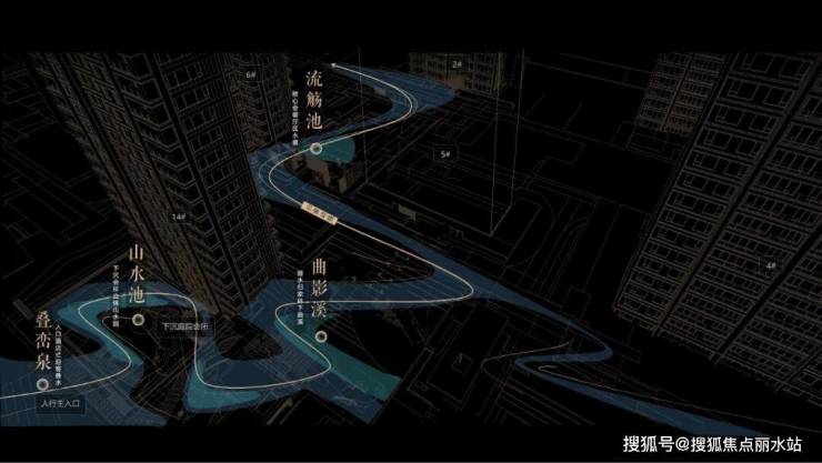 5#楼南侧的“曲水闲庭”同样是小区的核心庭院,分布着门户花园、归家水院、孩童稚趣社、漂浮庭院等景观配套,业主下个楼就能一站式满足社区会客、有氧运动、邻里交流、休闲娱乐以及儿童游乐等需求,甚至还能露营或者办一场花园音乐节。