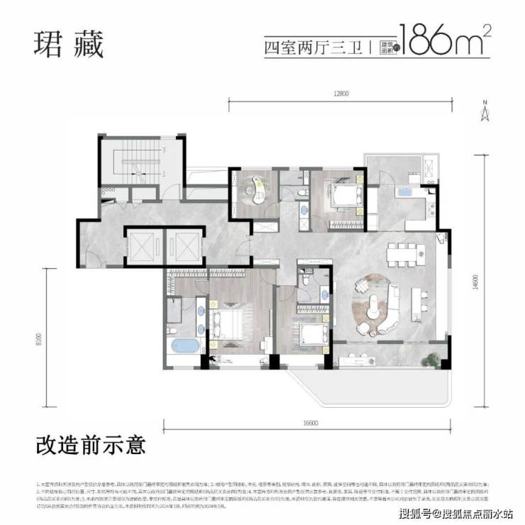 ▲保利·天珺建面约186㎡户型示意图(改造后)