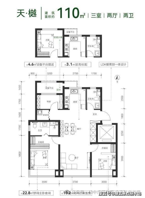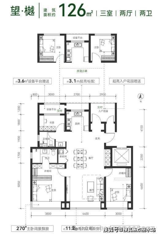 云璟·朗境:标准四叶草四卧室布局,独立家政间、衣帽间、入户玄关收纳客厅。