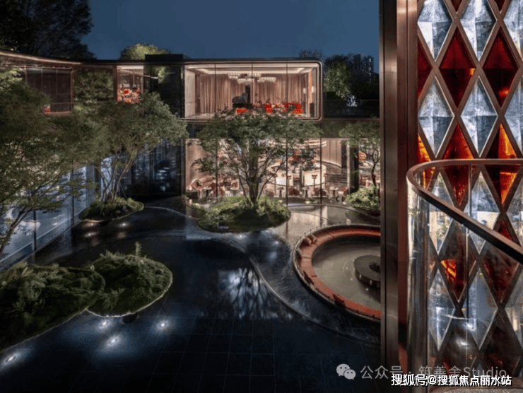 西区黑珍珠会所,为热带植物庭院萦绕的静谧氧吧,包含聚会区、台球室、水吧、影音室、棋牌室、书吧等空间,为业主提供酒店式的尊贵感、私人定制的专属感、圈层社交的场景感与空间格调的艺术感。汲取星级酒店灵感,引入中央车马厅概念,打造回转归家系统,打造人物出行专属等待厅,创新豪宅归家体验恒温归家动线,让冬日的归途不再寒冷直达地下室,定制专属归家体验。