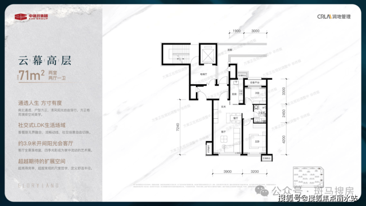 高层【71平】:两室户型的基础功能适配