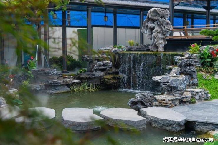 曲香廊串联亭榭,飞桥汀步点缀跌水