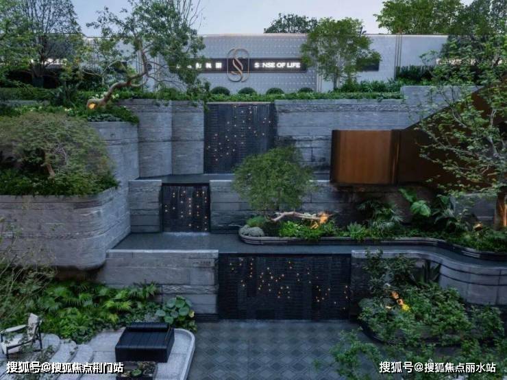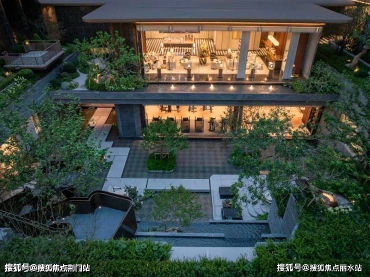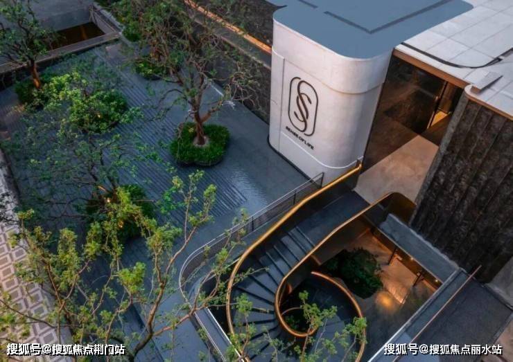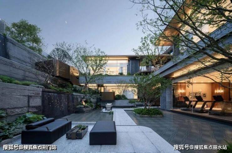 丽香庭 整体抬升约3.7米,结合最大高差 超7.5米的下沉庭院,解构赖特的「流水别墅」精髓,巧妙做出视觉层次多元的 “立体庭院”。